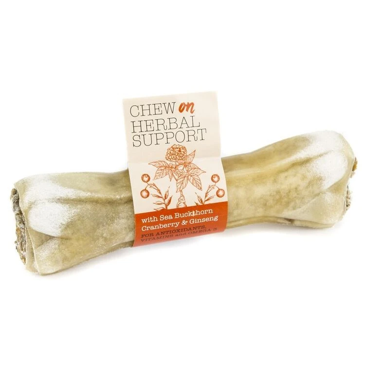 Chew On Support Bones are made in the EU and produced from 100% natural high quality rawhide with added benefits of Linseed, Cranberry & Ginseng for immune boosting properties. With added Sea Buckthorn, an ancient natural source of Vitamin A, C, E, Omega 3 fatty acids, antioxidants and flavonoids. Made with no preservatives, and high palatability for your customer’s dog. Hide chews also support dental care, preventing dental plaque formation and supporting the decomposition of tartar.