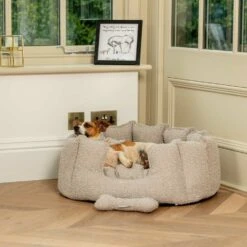 Lords & Labradors Luxury Tweed Dog Box Bed Natural Herringbone