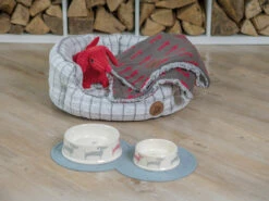 Lords & Labradors Tweed Dog Cushion Bed Oxford Blue Herringbone