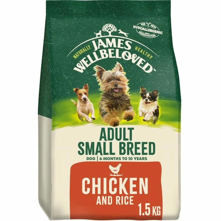 James Wellbeloved Small Breed Dog Food with: – CHICORY EXTRACT – source of prebiotic inulin helping to maintain the gut flora – YUCCA – for less smelly poos – SMALLER KIBBLE FOR SMALL BREED DOGS’ SMALLER MOUTHS