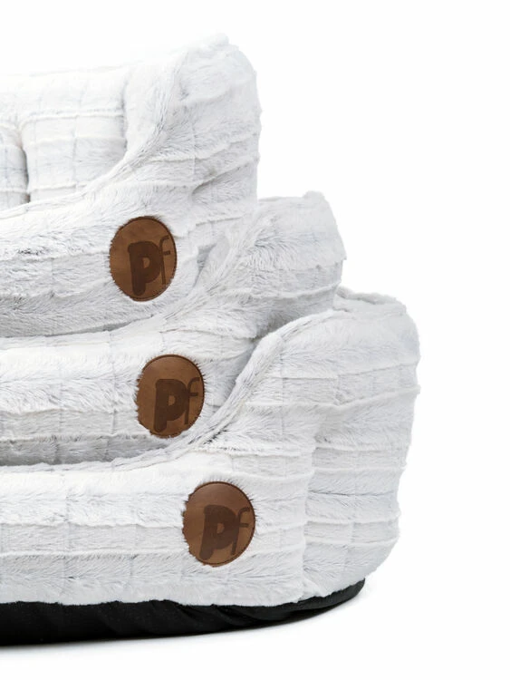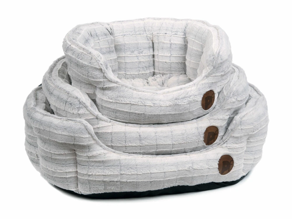 - The eye-catching white plush bed with silver-grey tones is made from a wonderfully soft plush and filled with a super soft poly fibre
